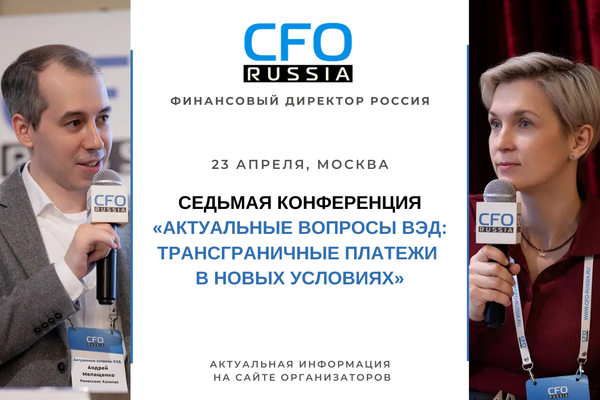 По вопросам участия в Седьмой конференции «Актуальные вопросы ВЭД: трансграничные платежи в новых условиях», возможностей выступления и спонсорской поддержки обращайтесь по телефону: +7 (495) 971-92-18 или по электронной почте events@cfo-russia.ru.